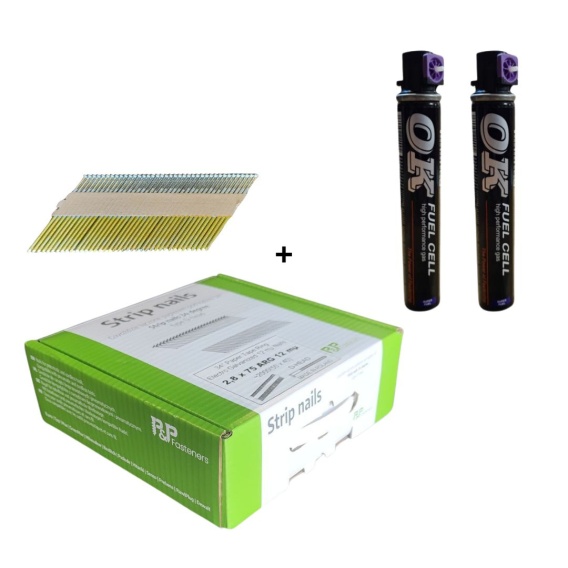 P&P Fasteners Gwoździe gładkie 3,1 x 90 mm – 2000 szt. + 2 gazy fioletowe - do gwoździarek gazowych i pneumatycznych, idealne do prac ciesielskich i dekarskich.