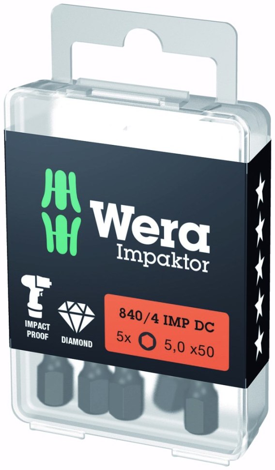5szt. profesjonalnych końcówek udarowych HEX, serii 840/4 IMP DC Impaktor, firmy WERA [05057645001]: