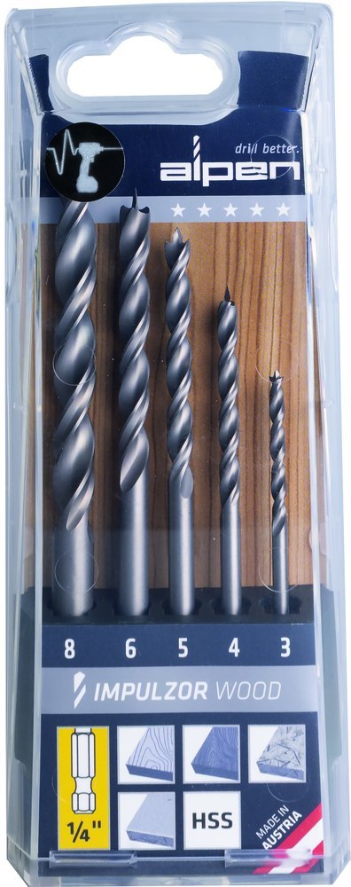 SKŁAD ZESTAWU WIERTEŁ DO DREWNA, IMPULZOR, ALPEN [0057500005100]