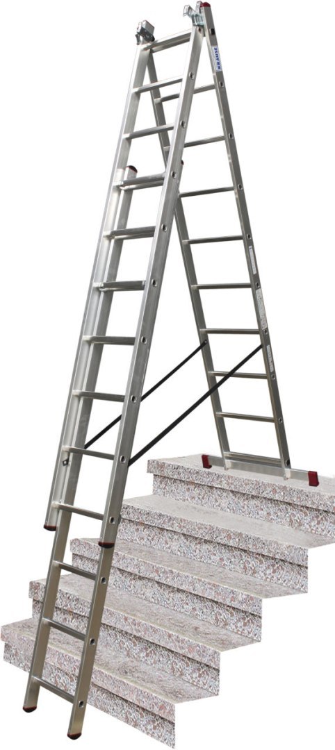 • 3 elementowa drabina wielofunkcyjna serii CORDA z funkcją ustawiania na schodach do użytkowania jako drabina: rozsuwana, przystawna oraz wolnostojąca,