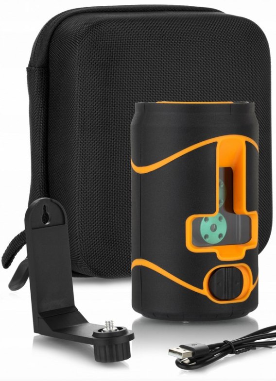 - laser emituje jedną wiązkę pionową i jedną poziomą w kolorze zielonym,