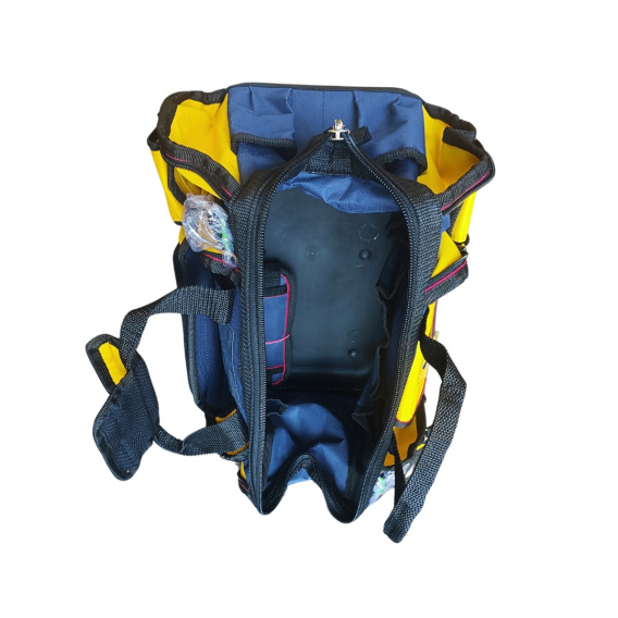 Polipropylenowe, wtopione dno chroni zawartość torby przed wilgocią i uszkodzeniami mechanicznymi, nawet na mokrym lub nierównym podłożu. Sztywna konstrukcja ścian zapewnia łatwy dostęp do wnętrza, a liczne kieszenie wewnętrzne i zewnętrzne umożliwiają uporządkowane przechowywanie narzędzi i akcesoriów.
