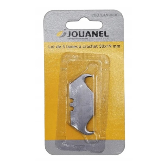 Zestaw 5 ostrzy hakowych (50 x 19 mm) do noży Jouanel COUT2L i COUT-R. Precyzyjne cięcie, łatwa wymiana i wysoka trwałość zapewniają komfort pracy przy różnorodnych materiałach.