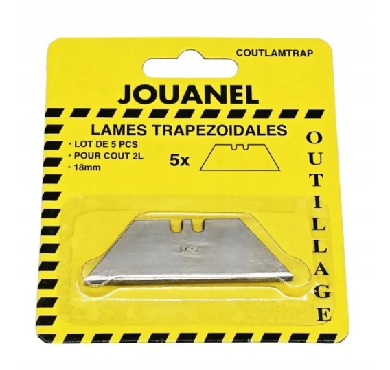 Zestaw 5 ostrzy trapezowych (60 x 19 mm) do noży Jouanel COUT2L i COUT-R. Wytrzymałe, precyzyjne i łatwe w wymianie – idealne do cięcia różnych materiałów.