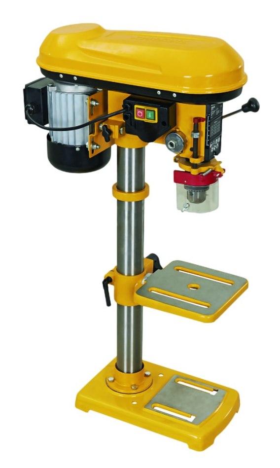 • wiertarka kolumnowa bez udaru z ruchomym stołem wyposażona w silnik o mocy 630W, z maksymalną średnicą wiercenia w metalu do 16 mm,