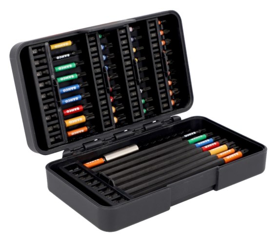 - uchylne przegrody do przechowywania końcówek zapewniają łatwy dostęp do bitów,