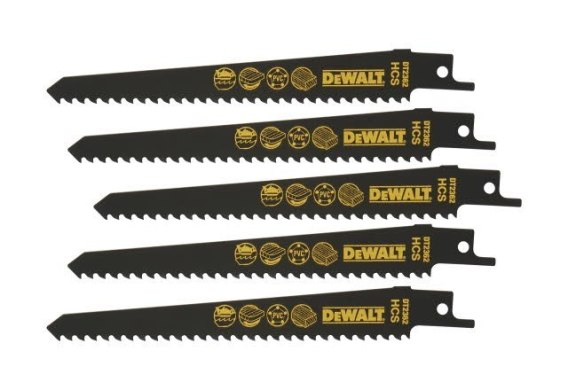 Zestaw 5 szt. brzeszczotów bagnetowych HCS do piły szablastej, do drewna 6 zębów/cal, długość 152 mm, Dewalt [DT2362-QZ]