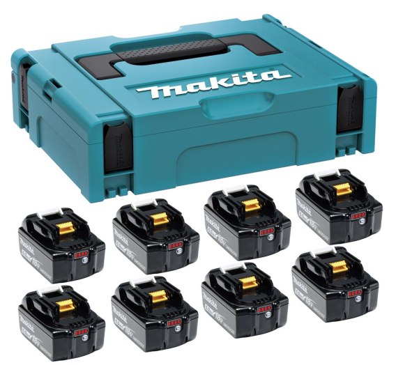 Zestaw 8 akumulatorów Li-ion 18V 6,0Ah Makita [1915A1-7] zawiera: